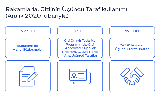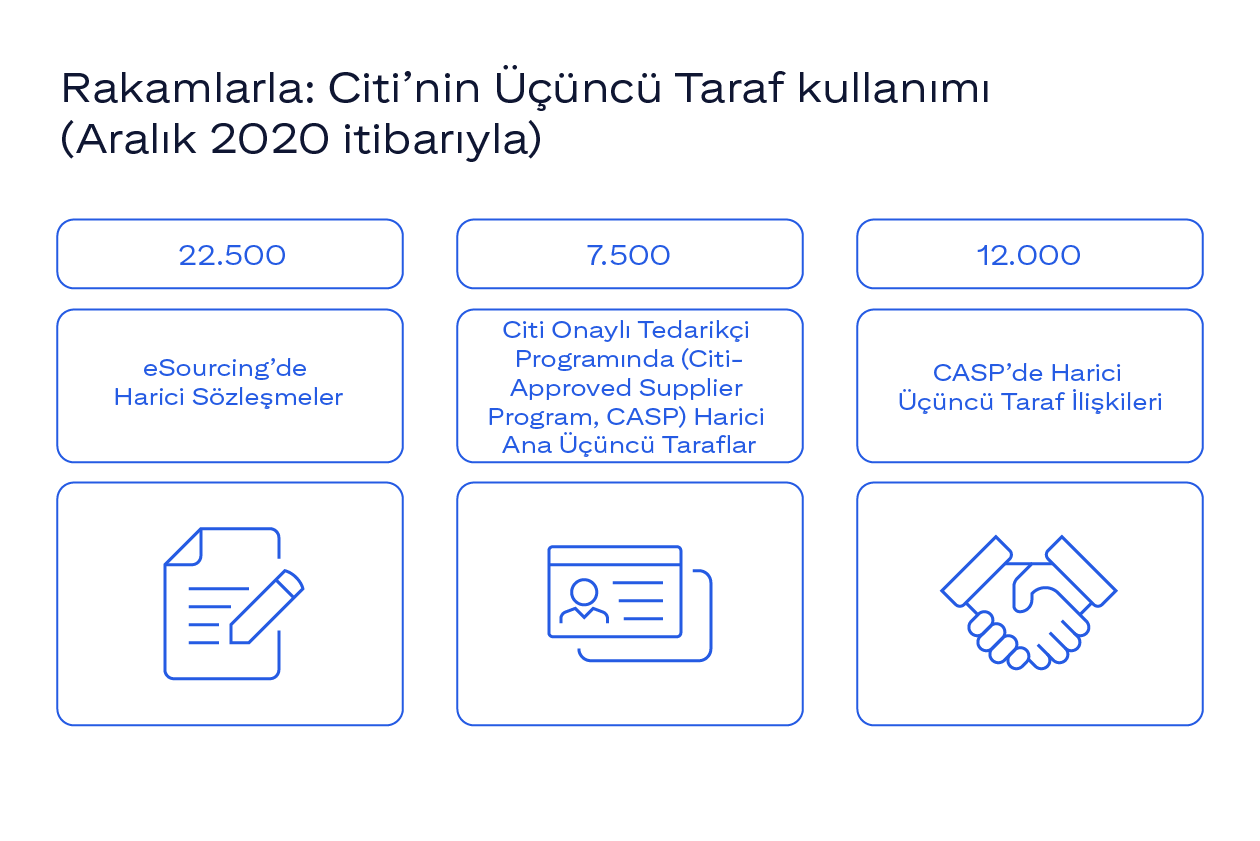 Aralık 2020 itibarıyla Citi, 7.500’den fazla Üçüncü Taraf ana şirketle yaklaşık 12.000 harici Üçüncü Taraf ilişkisine sahipti.