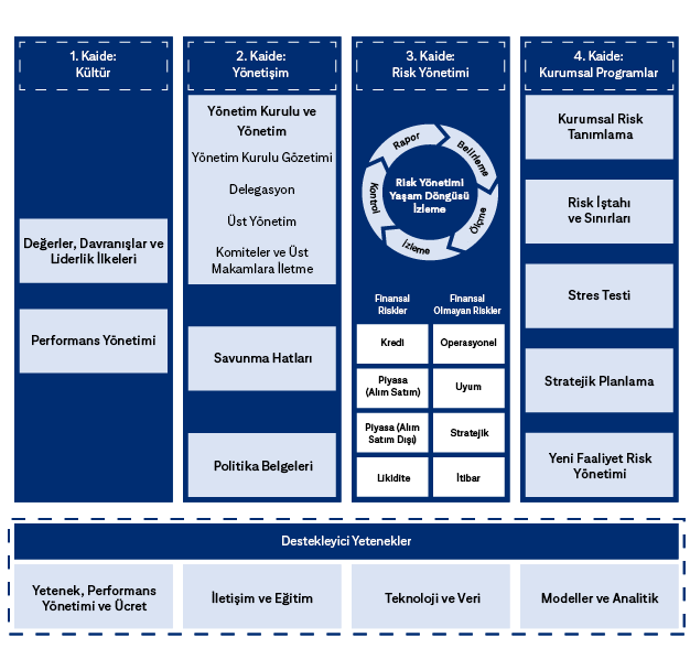 4. Kaide: Kurumsal Programlar; Kurumsal Risk Tanımlama, Risk İştahı ve Sınırları, Stres Testi, Stratejik Planlama ve Yeni Faaliyet Onayını kapsar.