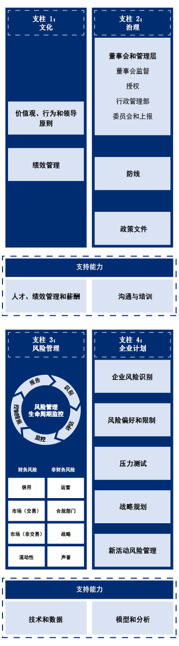 支柱 4:企业计划涵盖企业风险识别、风险偏好和限制、压力测试、战略规划和新活动批准。