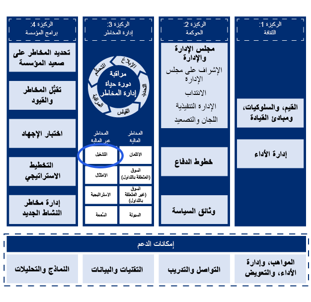 يُركّز هذا التدريب تحديدًا على المخاطر التشغيلية ضمن الركيزة الثالثة (إدارة المخاطر) من إطار عمل إدارة المخاطر التشغيلية (ERMF).