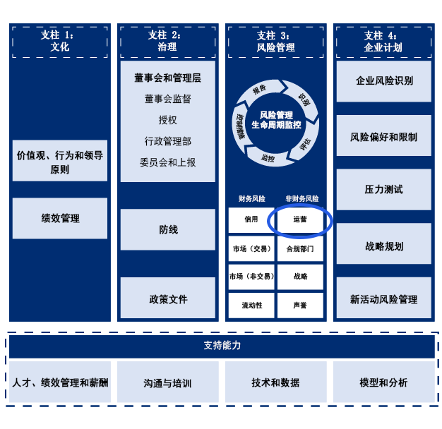 支柱 4:企业计划涵盖企业风险识别、风险偏好和限制、压力测试、战略规划和新活动批准。