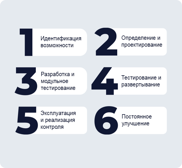 Пять фаз жизненного цикла EUC: идентификация и предварительное создание, регистрация, оценка риска, внедрение механизмов контроля и снижение риска.