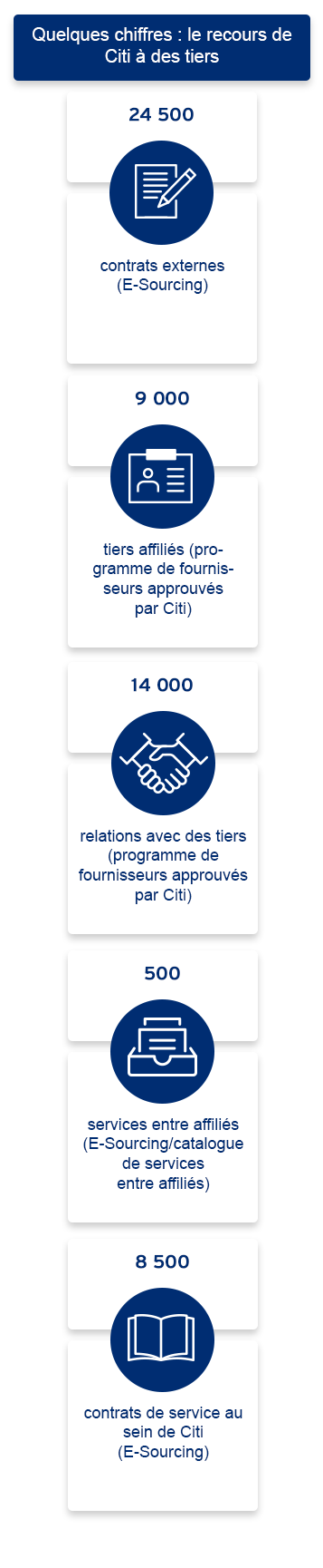 14 000 relations avec des tiers (programme de fournisseurs approuvés par Citi)