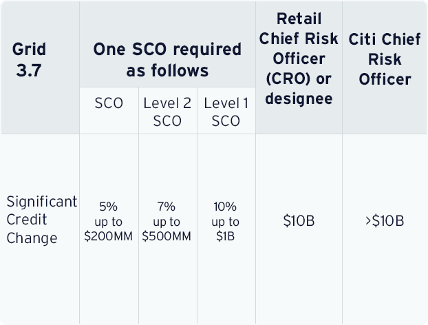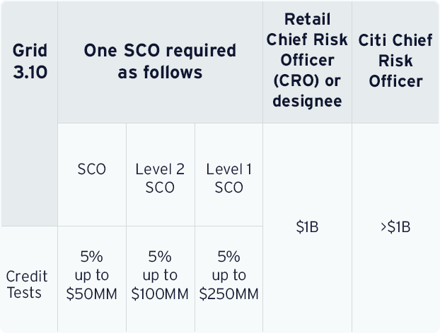 Each business must comply with requirements related to credit criteria, process and pricing exceptions outlined in RCR Credit Performance Management Policy (RCR Chapter 2) and the RCR Credit Performance Management Standard.